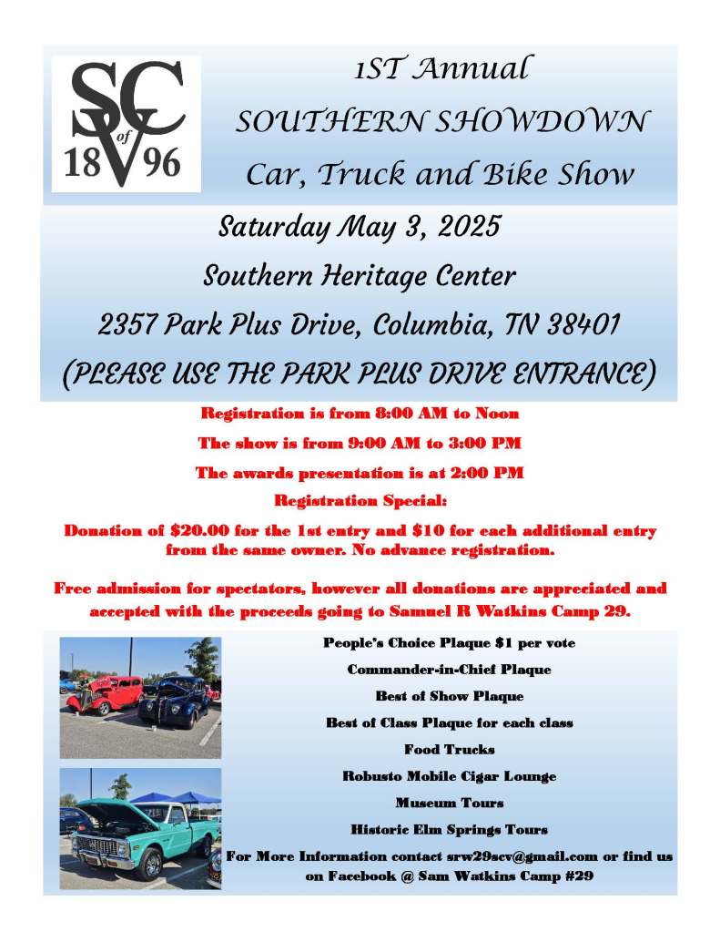 Find out more information about the Samuel R. Watkins Sons of Confederate Veterans Camp 29.